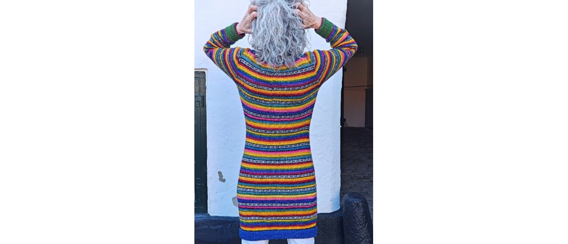 Jytte Harkjær der har HarKjærStrik, udstiller modeller af eget design, og sælger opskrifter samt færdigstrikkede modeller. Med sig på standen har Jytte, Lillieanes Farver, der udstiller og sælger håndmalede tørklæder + lidt håndfarvet garn.