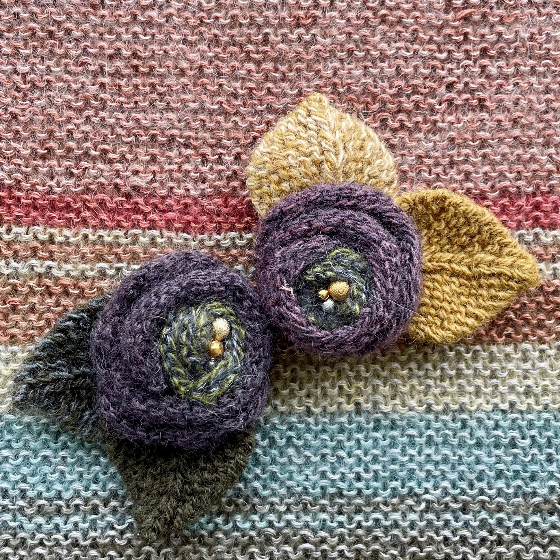 Strik en broche …… Ditte Larsen er kendt for både hendes strik, broderi og fantastiske farvesammensætning ud fra malerier. I dette inspirationsområde kan du lære at strikke en broche, inspireret af bogen “Bindesbøll på pindene”. Det er Isagers “Spinni” der bruges, og denne “mini-workshop” koster kr. 50,- pr. person inkl. materialer.